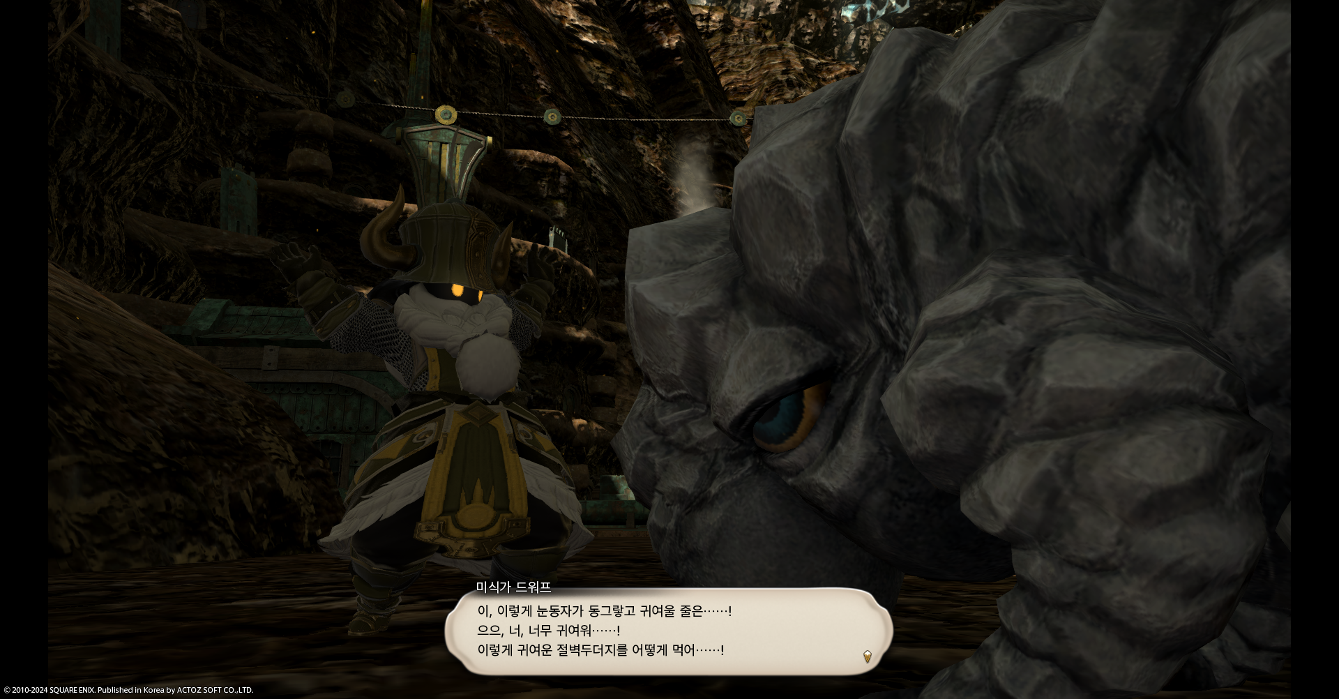 자동인형을 좋아하는 드워프: ……아무튼 코그 일가는 아주 고약한 놈들일세. 수염 모양은 촌스러운 데다 냄새도 나고, 우리 채굴 장소를 놈들이 멋대로 사용하는 일도 종종 있거든!